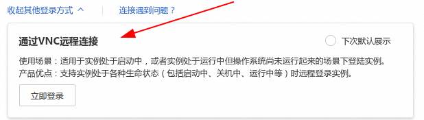 我们云服务器还是轻量我们都点击登录,然后在下面选择VNC登录。