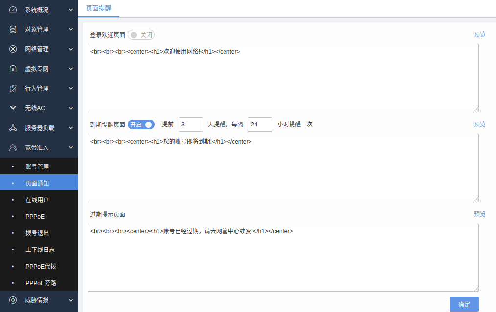 如下图,Panabit的过期前后提醒。