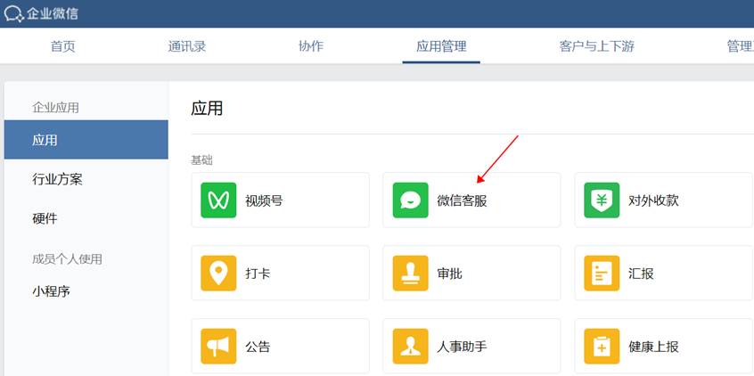 申请企业微信,进入企业微信页面的管理后台。